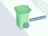 • Trash, Recycling, Grass and Glass carts will go in the street, wheels against the curb for collection